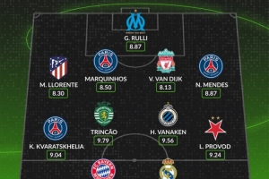 中場:克瓦拉茨赫利亞(巴黎,9.04分)、特林康(葡體,9.79分)、瓦納肯(布魯日,9.56分)、盧卡斯-普羅沃德(布拉格斯拉維亞,9.24分)