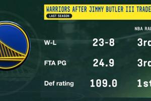 巴特勒加盟后 勇士防守效率聯(lián)盟第一!戰(zhàn)績(jī)&罰球聯(lián)盟第三