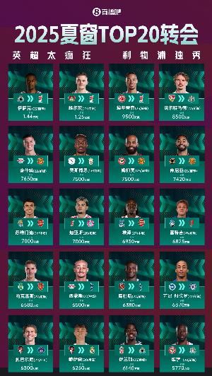 夏窗TOP10:轉會費/新賽季數據