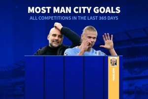 近一年曼城隊內(nèi)射手榜:哈蘭德35球斷層居首,福登14球次席