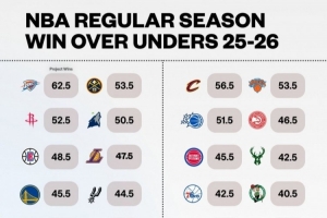 體育資訊10月8日訊 博彩公司BetMGM給出了新賽季NBA各隊(duì)常規(guī)賽的勝場盤口指數(shù),其中雷霆的勝場盤口指數(shù)為62.5,是所有球隊(duì)中最高的。這可以大致理解為博彩公司認(rèn)為雷霆的勝場數(shù)最有可能就是62、63場這幾個(gè)接近的數(shù)字。