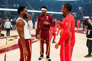 老隊友碰面!騎士VS公牛賽前 米切爾&阿倫與前隊友奧科羅攀談