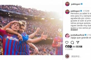 體育資訊10月9日訊 阿爾巴宣布將在本賽季結(jié)束后退役,巴薩中場加維社媒發(fā)文致敬。