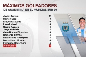 世青賽歷史阿根廷射手榜:薩維奧拉11球,老馬梅西6球,薩爾科4球