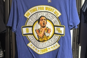 哈利伯頓曬出一張印有自己鎖喉漫畫照的WWE(世界摔角娛樂(lè))周邊T恤,并@了WWE。