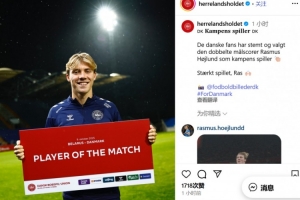 2球1助攻!官方:霍伊倫當選丹麥6-0白俄羅斯隊內(nèi)最佳球員