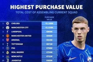 現有陣容花費最多球隊榜:切爾西11.8億歐居首,曼城、紅軍前三