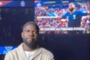 記者Hortense Leblanc報道,中場休息時間,法國足協為剛剛退役的烏姆蒂蒂舉行了紀念儀式。