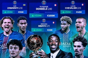 德轉列巴黎多人身價上漲:登貝萊、維蒂尼亞、內維斯在列