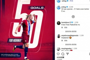 哈蘭德在社媒配文中寫道:“第50球很特別……但第51球的感覺會更好??????”