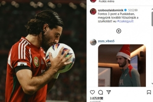 體育資訊10月13日訊 匈牙利在世預(yù)賽2-0擊敗亞美尼亞,匈牙利中場(chǎng)索博斯洛伊在球隊(duì)取勝后更新了個(gè)人社交媒體,并發(fā)布了一張自己親吻比賽用球的照片。