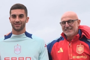 西班牙隊訓練前向費蘭頒發50場紀念球衣,球員貢獻22球5助