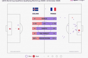 體育資訊10月14日訊 世預賽歐洲區小組賽,法國在客場和冰島戰成2-2的平手。