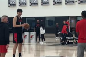 上場(chǎng)爆發(fā)后整個(gè)人松弛感拉滿~小吧探班開(kāi)拓者訓(xùn)練 楊瀚森加練罰球