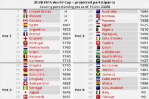 體育資訊10月15日訊 10月國際比賽日結束,距離世界杯12月抽簽只差2個月,各隊只剩11月國際比賽日能夠獲得積分。