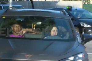 亞馬爾女友妮基·妮可今日開車送男友前往巴薩基地訓練,據(jù)此前報道,18歲的亞馬爾仍在學駕照。
