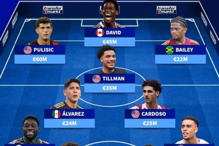 體育資訊10月16日訊 德轉盤點了中北美及加勒比海足聯球員的最高身價陣容,整套陣容總價值高達3.15億歐元。其中美國邊鋒普利西奇以6000萬歐元成為身價最高的球員,加拿大后衛阿方索-戴維斯以5000萬歐元位列第二。