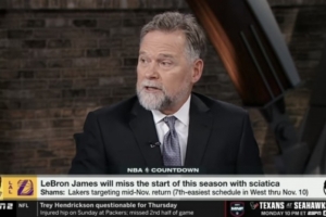 據著名記者Shams報道,湖人和詹姆斯將11月中旬作為其現實的目標復出日期。