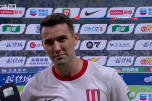 體育資訊09月21日訊 本輪中超,成都蓉城客場1-1讀秒絕平上海申花,賽后絕平功臣周定洋接受場邊采訪。