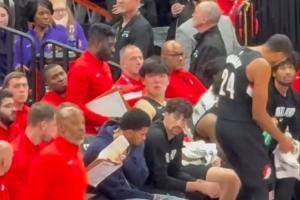 楊瀚森替補席哭了,前CBA名宿杰特上前安慰~楊瀚森眼睛有些紅,也有一些撇嘴