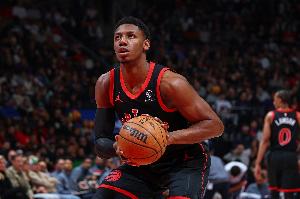 體育資訊10月18日訊 NBA季前賽,猛龍半場72-56領先籃網。