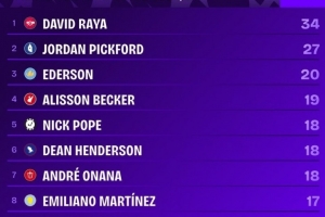 體育資訊10月19日訊 據統計,阿森納門將拉亞自2023/24賽季加盟球隊以來,在英超聯賽中的表現極具統治力。