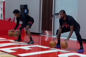阿門(mén)與伊森一同進(jìn)行運(yùn)球訓(xùn)練!火箭官方:恐怖雙胞胎保持同步