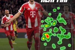 德甲國家德比,凱恩的進球幫助拜仁2-1擊敗多特蒙德。本場凱恩不僅打入了首開記錄的頭球,在串聯策動、對抗、防守方面也燃盡所能。
