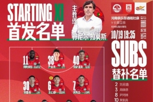 中超第27輪,河南俱樂部酒祖杜康VS長春亞泰 首發(fā)及替補(bǔ)隊(duì)員名單