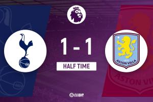 體育資訊10月19日訊 北京時(shí)間21:00,英超第8輪熱刺vs阿斯頓維拉,比賽在新托特納姆熱刺球場(chǎng)打響!上半場(chǎng),本坦庫爾破門;庫杜斯進(jìn)球被吹越位!羅杰斯半場(chǎng)前世界波扳平!半場(chǎng)結(jié)束,熱刺暫時(shí)1-1維拉。