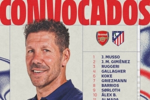 馬競客戰阿森納名單:阿爾瓦雷斯、格列茲曼領銜,卡爾多索缺席