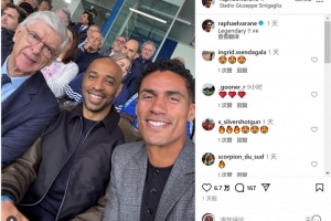 觀戰科莫vs尤文!瓦拉內社媒曬與溫格、亨利合照:傳奇