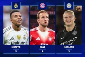 體育資訊10月21日訊 今夜歐冠重燃戰(zhàn)火,德轉(zhuǎn)賽前列出了截至目前本賽季有可能贏得歐冠金靴的三人,姆巴佩以5球領(lǐng)跑,凱恩4球緊隨其后,哈蘭德3球位列第3。