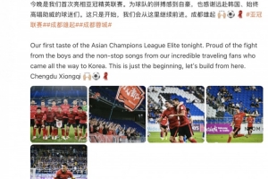在蓉城隊史首場亞冠正賽惜敗之后,周定洋在社媒曬出現場照片并配文寫道:“今晚是我們首次亮相亞冠精英聯賽。為球隊的拼搏感到自豪,也感謝遠赴韓國、始終高唱助威的球迷們。這只是開始,我們會從這里繼續前進。成都雄起 ????????”
