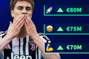 20歲的伊爾迪茲目前身價(jià)5000萬(wàn)歐,德轉(zhuǎn)給出的下次更新身價(jià)分別有6000萬(wàn)歐、7000萬(wàn)歐、7500萬(wàn)歐以及8000萬(wàn)歐。