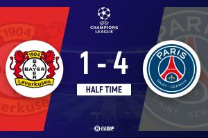 體育資訊10月22日訊 北京時間10月22日凌晨3時,歐冠聯賽階段第3輪,巴黎做客拜耳競技場對陣勒沃庫森。上半場,帕喬首開紀錄,隨后扎巴爾尼送點,格里馬爾多罰丟點球,安德里希肘擊犯規被紅牌罰下,隨后扎巴爾尼犯規領到紅點套餐,阿萊克斯-加西亞點射扳平,杜埃雙響、克瓦拉茨赫利亞傳射。半場戰罷,巴黎暫4-1領先勒沃庫森。