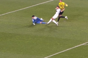 硬漢??凱拉特門將出擊用頭擋出對手單刀 歐冠5次撲救獲10分滿分