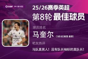 2025-2026賽季英超火熱進行中,體育資訊和咪咕體育聯合發起每輪英超最佳球員評選活動!第8輪評選結果出爐,馬奎爾雙紅會8次解圍+致勝頭球,幫助曼聯2-1擊敗利物浦,紅魔終結近10年客戰利物浦不勝紀錄,馬奎爾贏得吧友近15萬的投票,當選【體育資訊X咪咕體育英超第8輪最佳球員】!