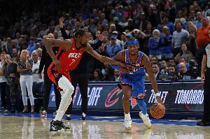 22日,新賽季NBA大幕拉開。衛(wèi)冕冠軍雷霆在主場(chǎng)經(jīng)過兩個(gè)加時(shí)的苦戰(zhàn)以125比124險(xiǎn)勝火箭。比賽最后時(shí)刻,上賽季總決賽最有價(jià)值球員亞歷山大接管比賽,他制造了杜蘭特犯規(guī),通過罰球鎖定了比賽的勝利。亞歷山大本場(chǎng)比賽出戰(zhàn)將近48分鐘,26中12,得到35分、5籃板、5助攻。