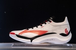 新出的馭帥20,也用最經典白黑紅配色做了楊瀚森本人的PE配色,有他個人的專屬Logo,后跟處還有球衣號碼。