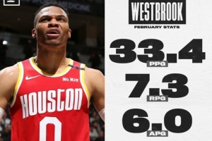 場均33.4分!美媒曬威少20年2月豪華數據:他就是火箭需要的控衛