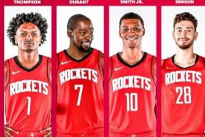根據(jù)目前的情況來看,火箭潛在首發(fā)陣容中有阿門-湯普森、杜蘭特、小賈巴里-史密斯和申京。如果火箭選擇打雙塔(亞當(dāng)斯、卡佩拉),或者堆積側(cè)翼球員的話,那么四年級(jí)生伊森或新援芬尼-史密斯進(jìn)入首發(fā),火箭可以排出好幾套5人都在2米以上的先發(fā)陣容!