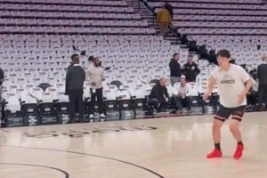 萬眾期待!楊瀚森身穿中國紅戰靴迎接常規賽首秀 賽前投籃熱身