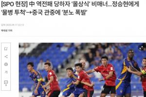 體育資訊09月17日訊 亞冠精英聯賽東亞區第1輪,成都蓉城客場1-2不敵蔚山HD,賽后韓媒spotv聲稱,有中國客場球迷朝韓國球員鄭升炫投擲水瓶。