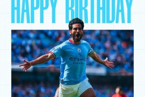 曼城官方社媒曬出京多安的生日海報,配文:“生日快樂,伊爾凱。”