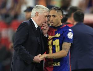 報道稱,據了解拉菲尼亞周四訓練課后感到不適,周五則是完全沒有參與訓練,拉菲尼亞將確定無緣國家德比。弗里克雖然此前并不打算讓他首發,但本計劃讓拉菲尼亞出任替補奇兵的角色。
