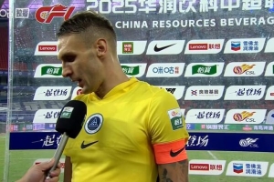 體育資訊10月24日訊 今晚中超聯(lián)賽第28輪,深圳新鵬城2-1戰(zhàn)勝武漢三鎮(zhèn)。賽后深圳新鵬城后衛(wèi)杜加利奇在場邊接受了采訪。