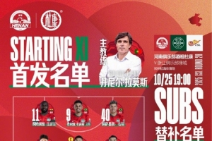2025華潤飲料中超聯(lián)賽第28輪 河南VS浙江 首發(fā)及替補(bǔ)隊員名單