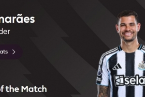本場比賽紐卡球員吉馬良斯在第90分鐘打進絕殺,賽后當選英超官方球迷票選全場最佳球員。
