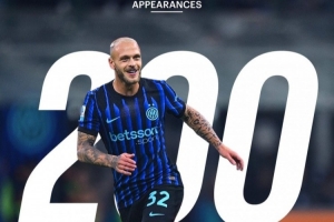 國米官推為其曬出紀念海報,并配文:“200場比賽,無限的激情!”